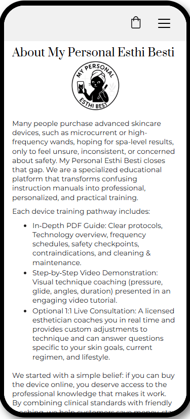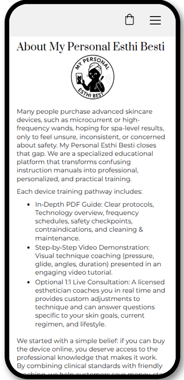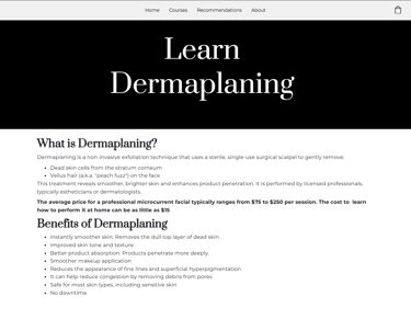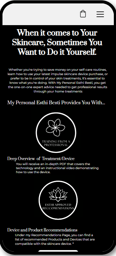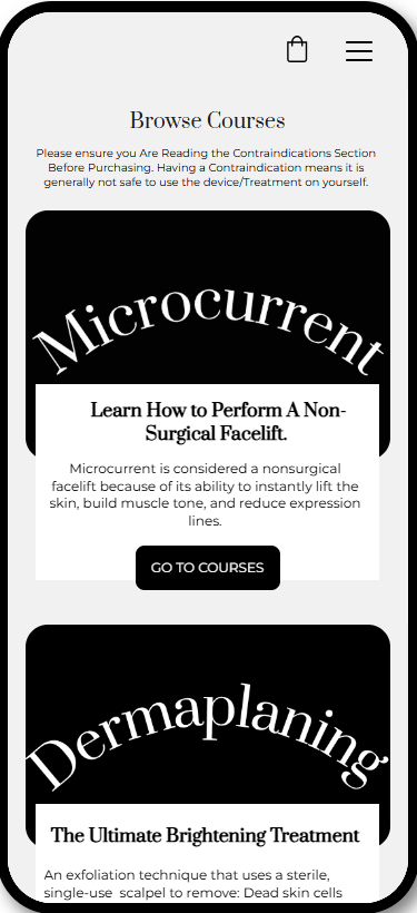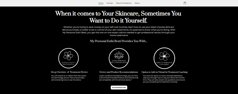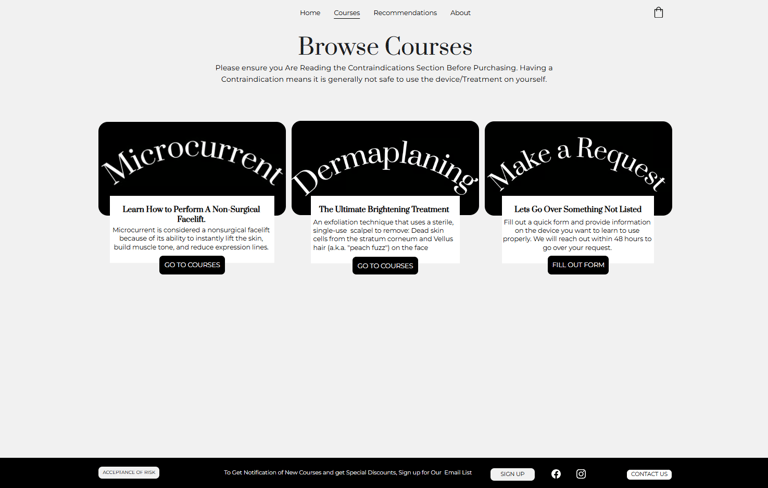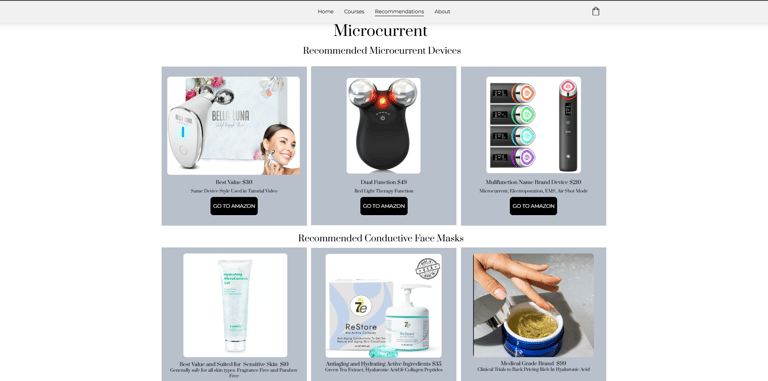 Clients can click on the icons to jump to the section of the page that displays recommended products specific to the course/treatment