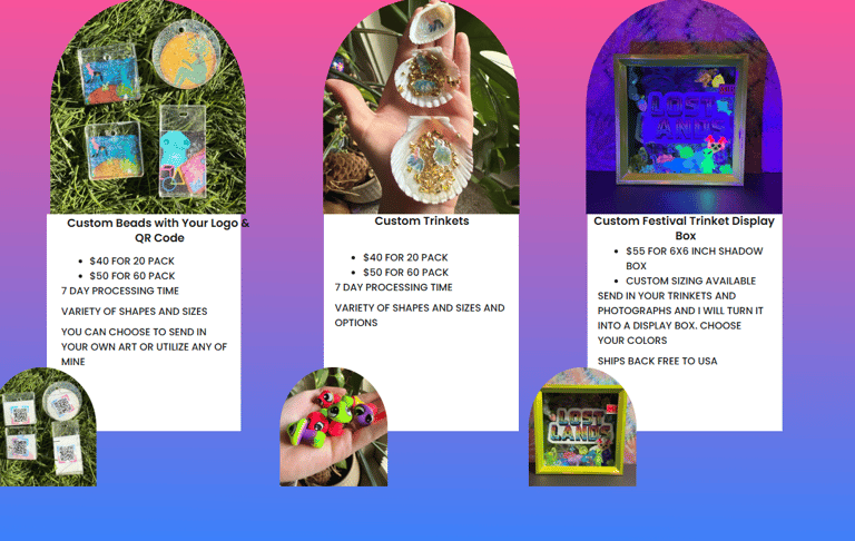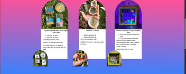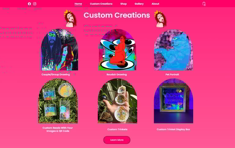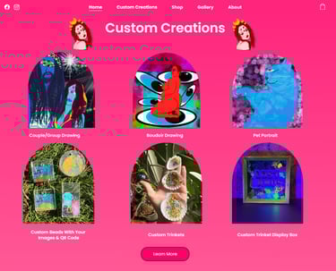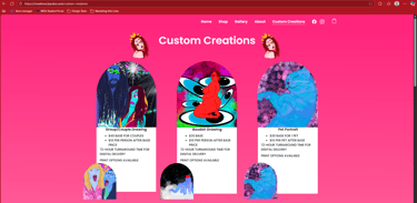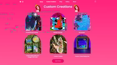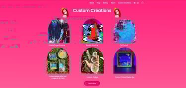 Showcases Custom Creations with a Call to Action Button to engage shoopers to start a conversation about custom-made art pieces