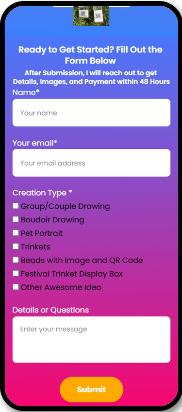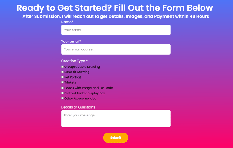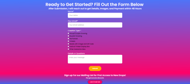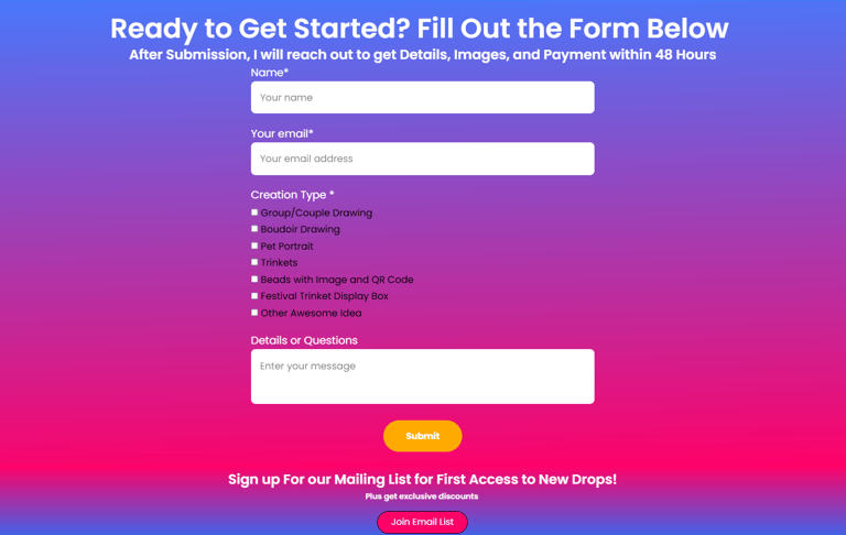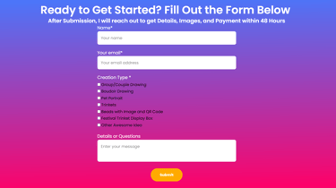Contact form set up to notify artist to start conversation with potential buyers about their custom request