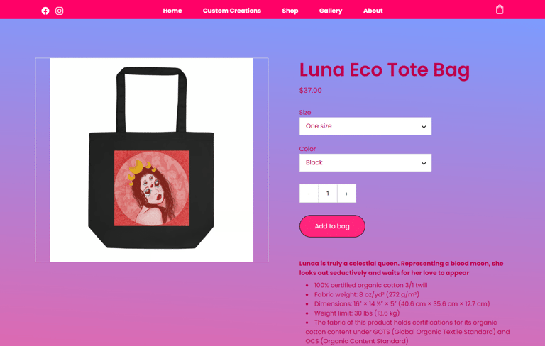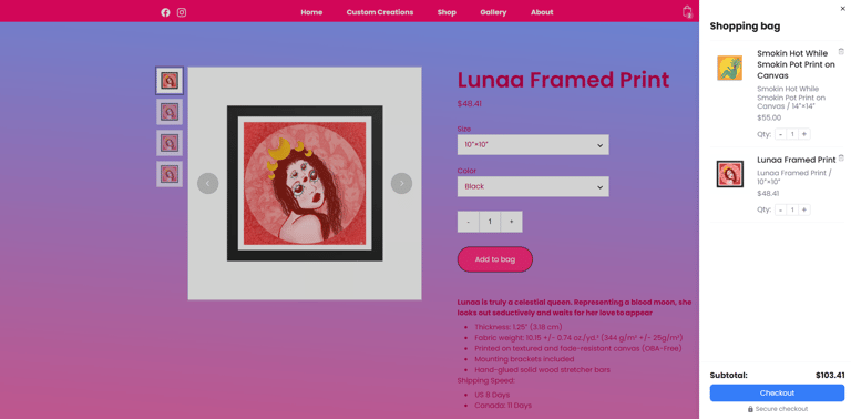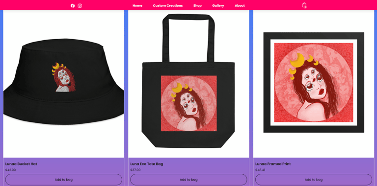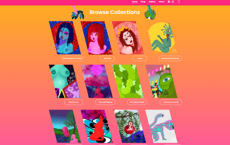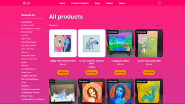 The main goal of the website is to sell art. The artist creates many forms of their art ie, prints, jewelry, etc