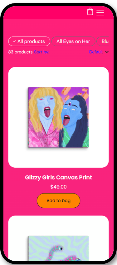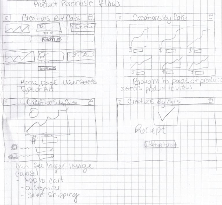 Streamlined purchase flow from the home page, users can select the kind of art they are looking for, and then are taken to a page with the different variations.